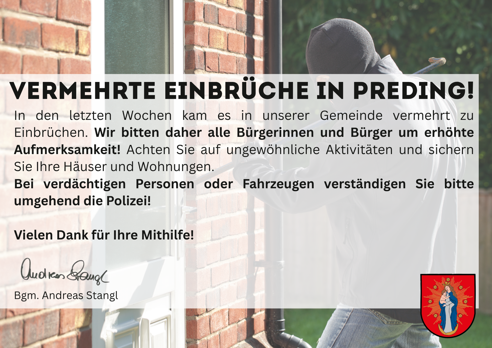 Achtung! Vermehrte Einbrüche in Preding!