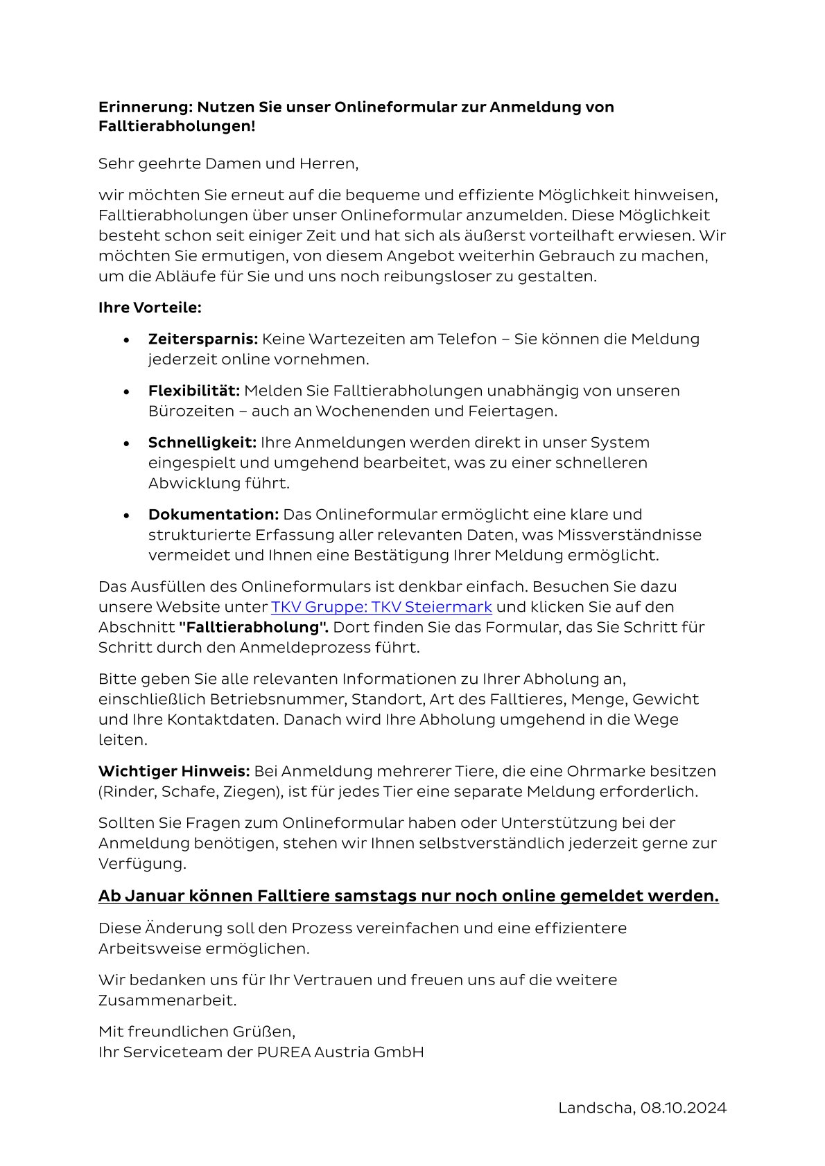 Änderungen der Falltiermeldungen ab Jänner 2025