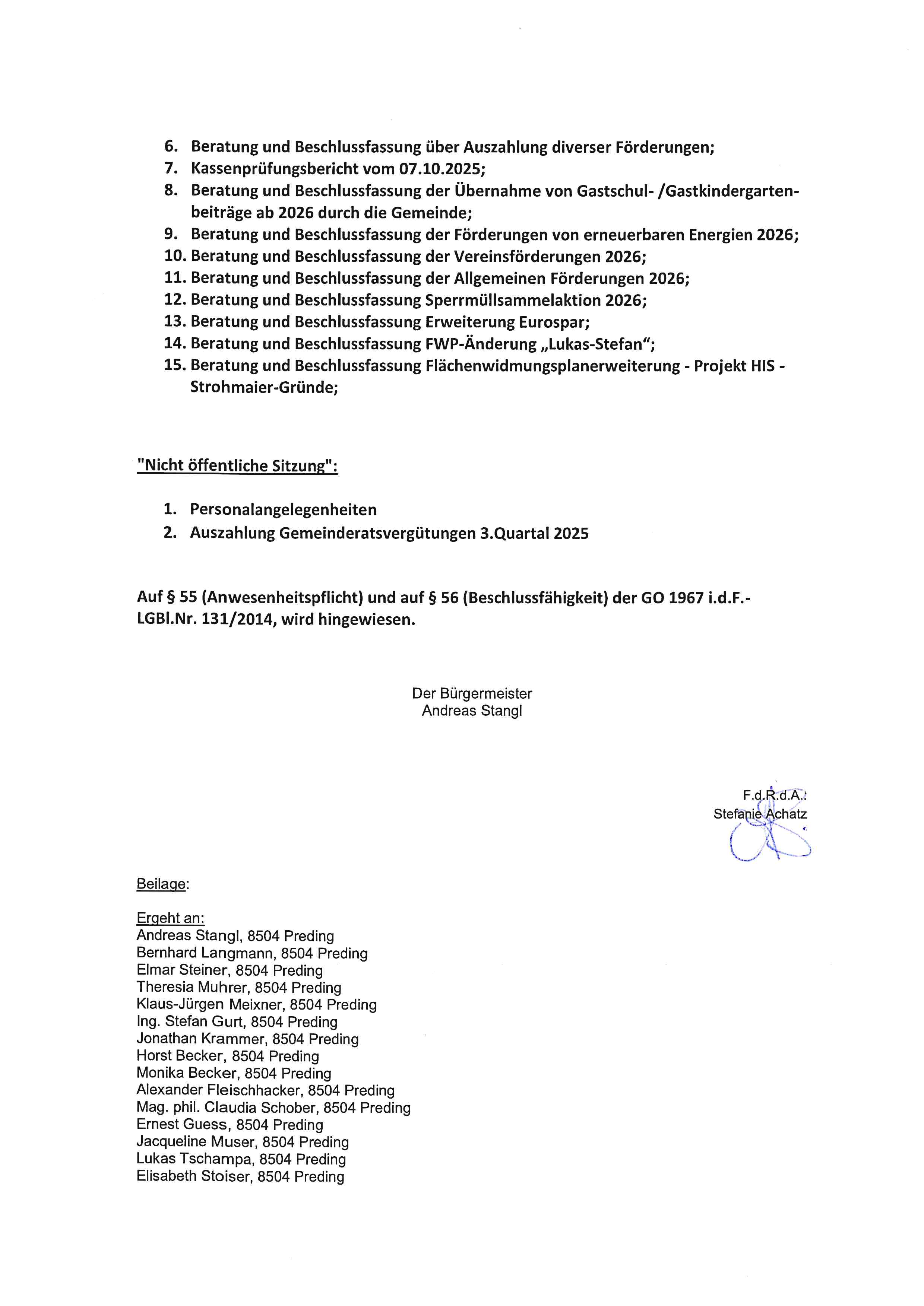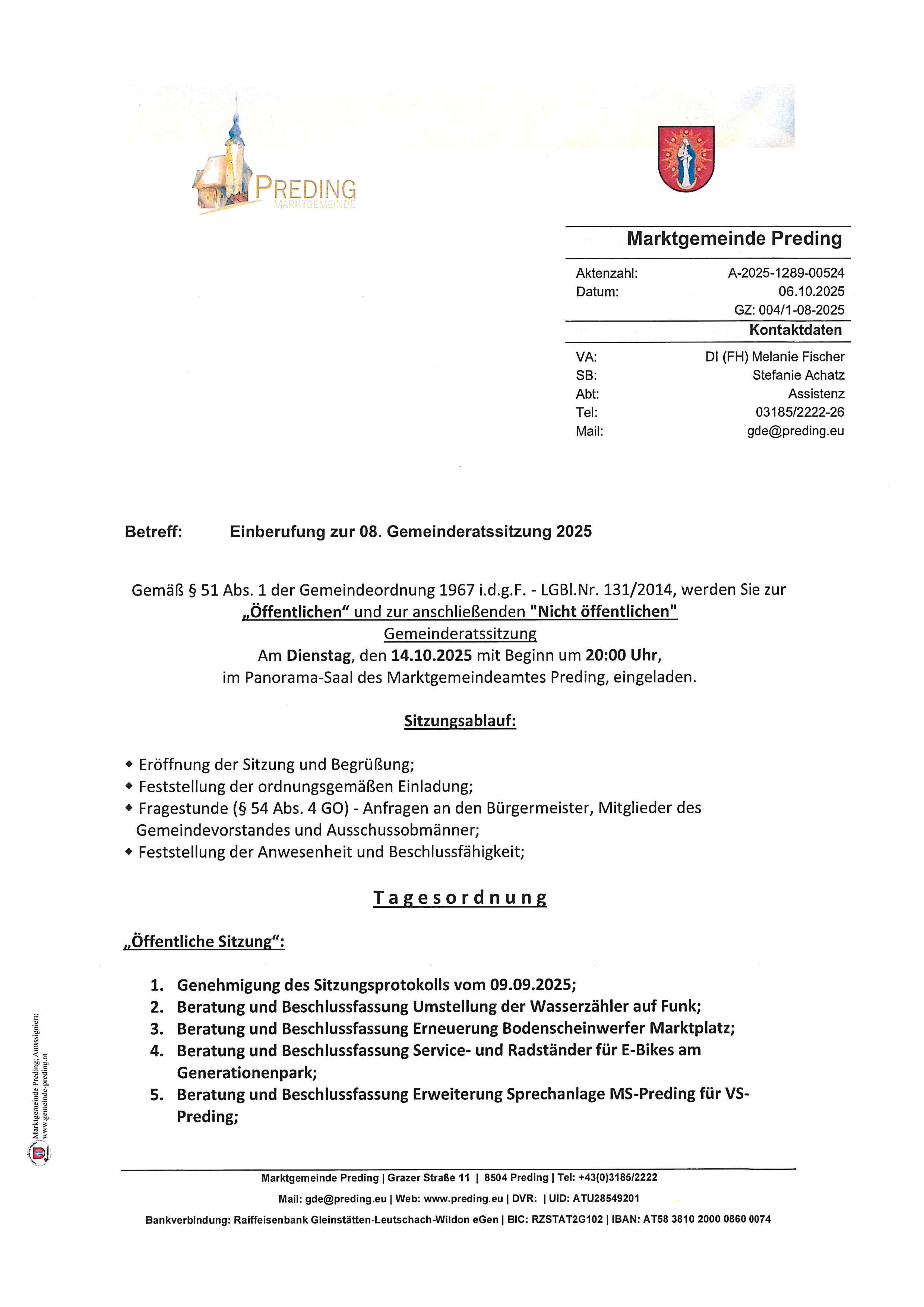 Einladung 08. Gemeinderatssitzung – 14.10.2025