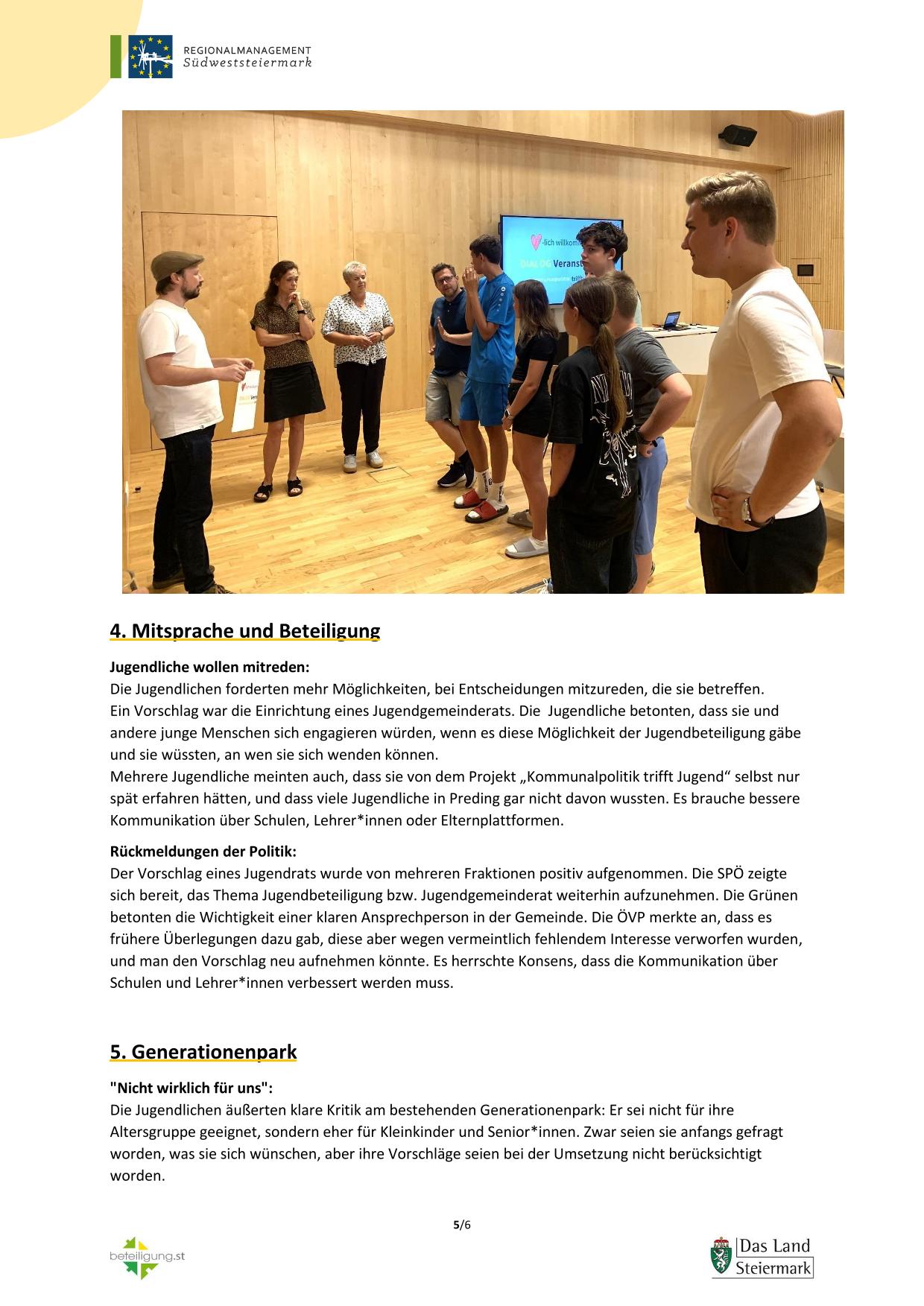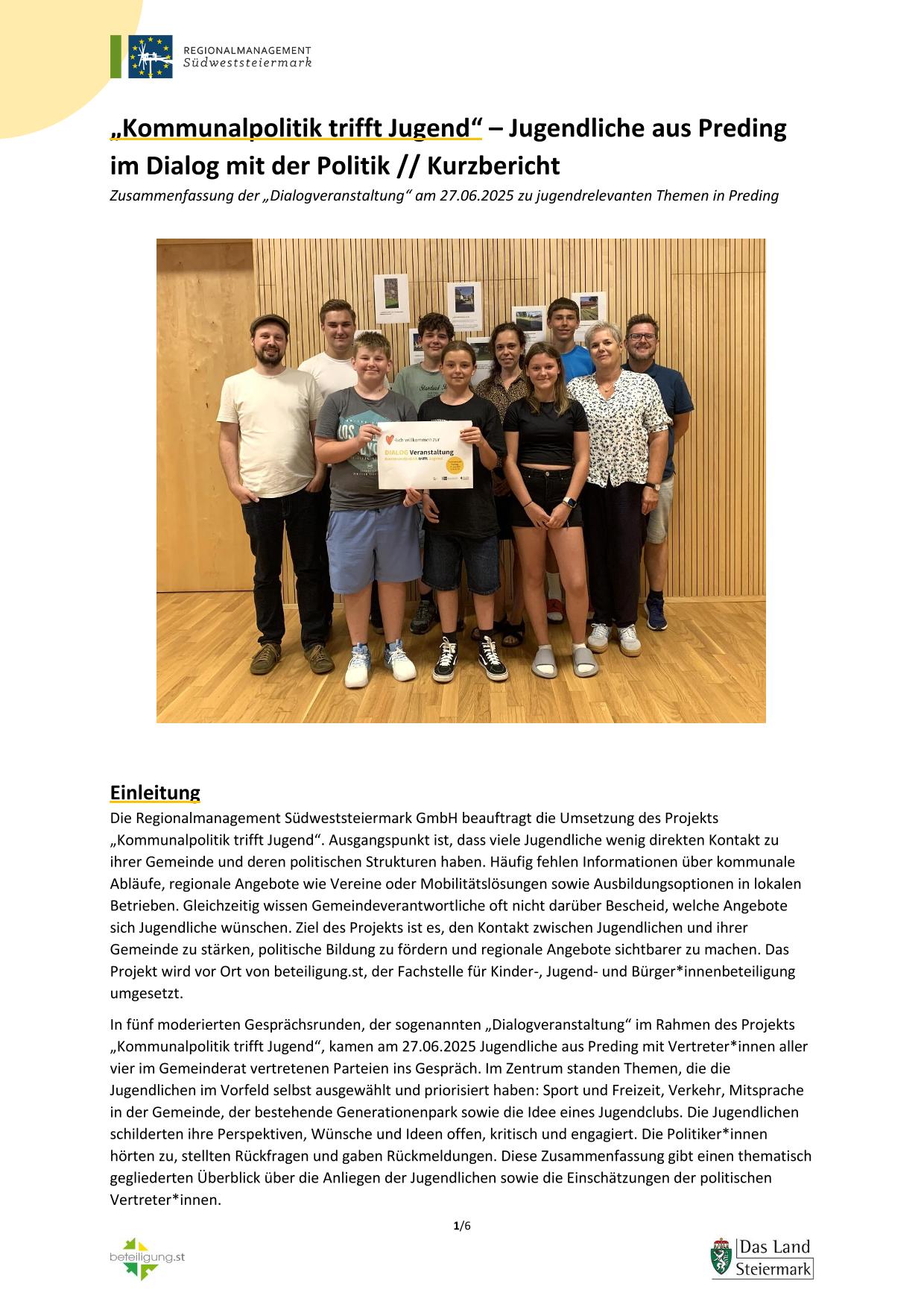 „Kommunalpolitik trifft Jugend“ – Jugendliche aus Preding im Dialog mit der Politik // Kurzbericht