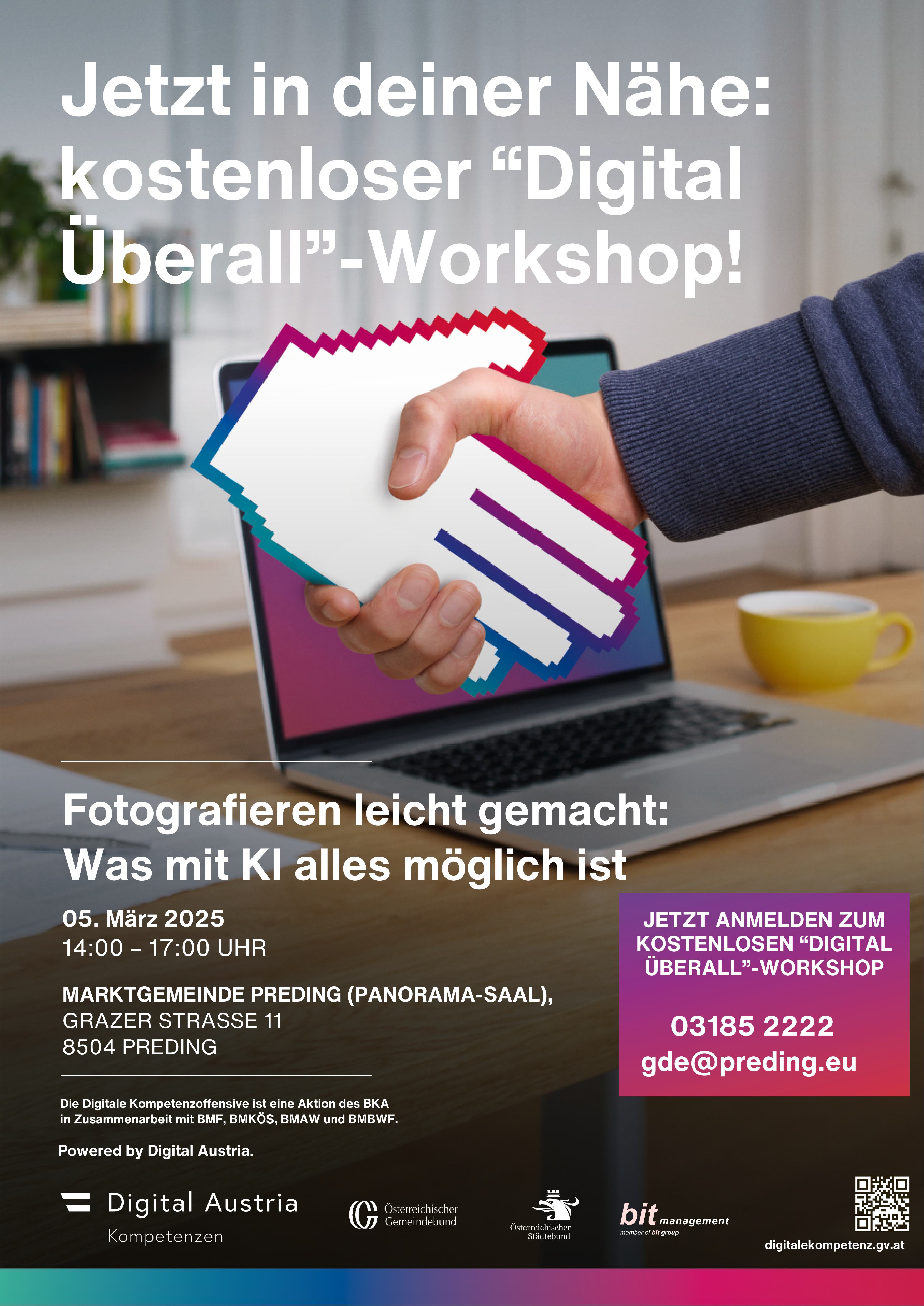 Der Workshop „Fotografieren leicht gemacht: Was mit KI alles möglich ist“ vermittelt Erwachsenen, insbesondere solchen mit wenig Zugang zu digitalen Bildungsangeboten, die Grundlagen der Smartphone-Fotografie und die Nutzung von Künstlicher Intelligenz (KI). Der Workshop deckt Bildkomposition, Belichtung und Fokus, KI-gestützte Fotografie-Funktionen, praktische Anwendung von KI-Tools, Fotobearbeitung mit KI-Apps und ethische Überlegungen ab. Durch praktische Übungen und individuelles Feedback werden die Teilnehmenden befähigt, ihre Smartphones effektiv für die Fotografie zu nutzen und ihre kreativen Fähigkeiten zu erweitern.